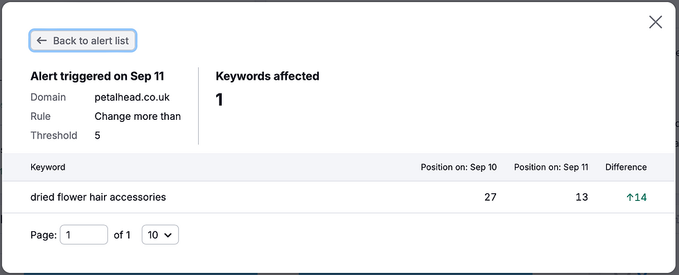 Really exciting to see Petalhead's SERP rankings improve despite the website not needing to boast lots of supporting content. Do bear in mind that Alex isn't looking for major growth at this stage so that she can manage her workload effectively, especially when it's peak wedding season, but it's good to know her online visibility is already improving.
